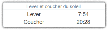 C'est pour cela que l'on vous propose un nouveau petit widget, qui vous indique l'heure du lever et du coucher du soleil.